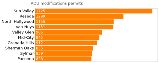 One advantage of ADUs is that they can be sited in neighborhoods of single-family homes, where it is otherwise extremely difficult to put new housing. The top neighborhoods for ADUs are Sun Valley, Reseda and Van Nuys.